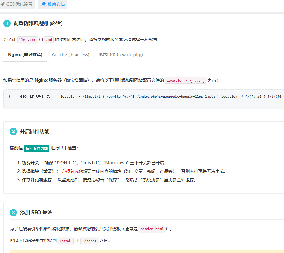 模块自主选择:后台可自由勾选需要开启 GEO 的模块(如新闻、产品、案例等)。